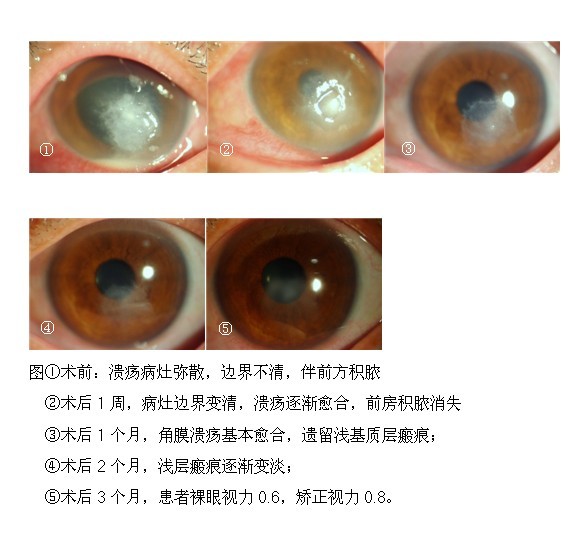 該手術(shù)是應(yīng)用光化學(xué)原理,僅是微創(chuàng)手術(shù),術(shù)后反應(yīng)小,術(shù)者痛苦少。謝某的配合,讓手術(shù)進(jìn)行得很順利。術(shù)后1月,廈門眼科中心進(jìn)行隨訪,謝某的潰瘍基本愈合,術(shù)后3個月,謝某的裸眼視力0.6,矯正視力0.8。手術(shù)的成功不僅為謝某保住了眼球,而且視力恢復(fù)狀況良好,這讓謝某心中充滿對廈門眼科中心的感激,連連說謝謝。