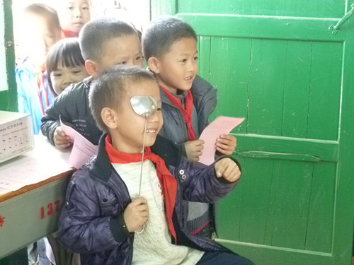 醫(yī)護(hù)人員為貧困兒童檢查眼睛。