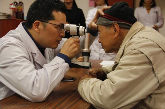 毛祖紅醫(yī)師現(xiàn)場為老年人朋友進(jìn)行眼睛篩查