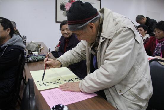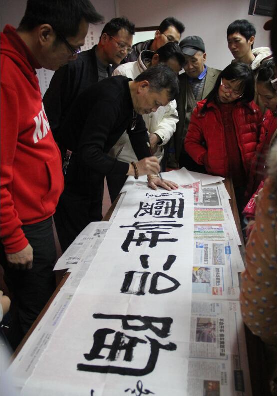 書法家何老師現(xiàn)場揮毫潑墨,大展風(fēng)采,廣大朋友們聚精會神地學(xué)習(xí)