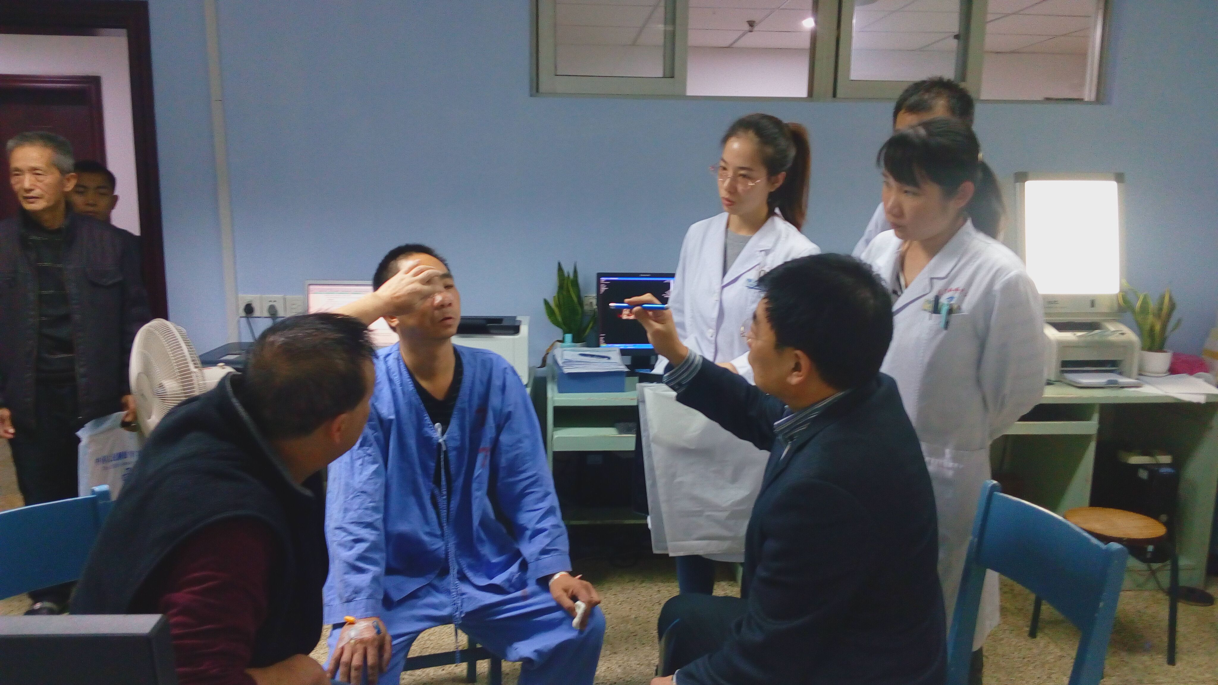 孫教授與眼整形科室的醫(yī)生在給眶骨骨折患者會診