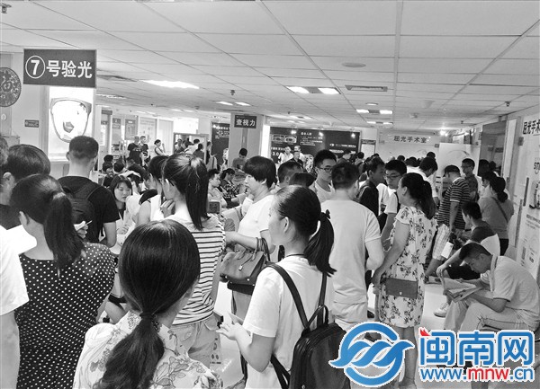 6月23日高考成績出來后,很多高考生從龍巖、漳州、泉州等地趕來廈門眼科中心做近視激光手術(shù)。李媽媽也帶著兒子從泉州趕來預(yù)約手術(shù)。