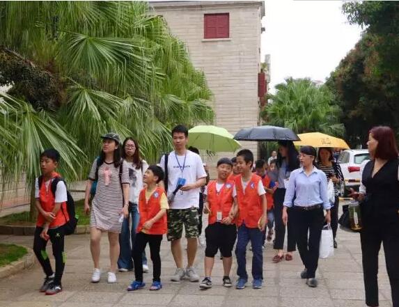 圖示:跟隨廈門大學(xué)新聞傳播學(xué)院研究生團(tuán)總支志愿服務(wù)者參觀廈大美景