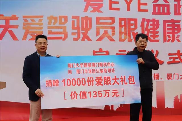 “關(guān)愛駕駛員眼健康公益活動計劃于1月9日至24日,在廈門眼科中心五緣院區(qū)為1萬名司機送上價值135萬元的暖冬愛眼大禮包。禮包包括價值105元的眼健康體檢套餐(查視力、測眼壓、電腦驗光裂隙燈、眼底檢查)和價值30元的油禮。”廈門大學附屬廈門眼科中心副院長張廣斌介紹。
