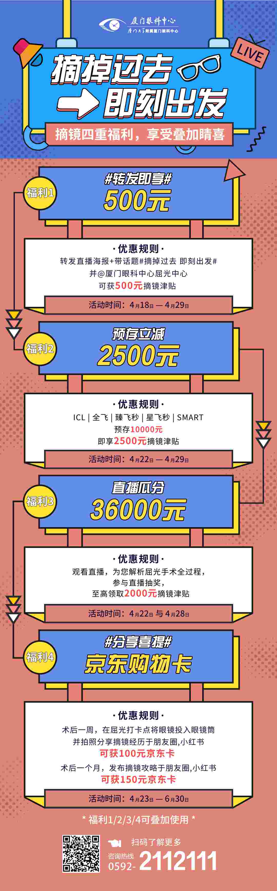 術(shù)后一個(gè)月,發(fā)布“摘鏡攻略”于朋友圈、小紅書,即可獲得150元京東卡。