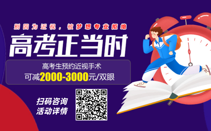 高考生憑相關證件可享受以下優(yōu)惠:全飛秒SMILE/臻飛秒/星飛秒/全激光SMART優(yōu)惠3000元/雙眼;半飛秒優(yōu)惠2000元/雙眼。