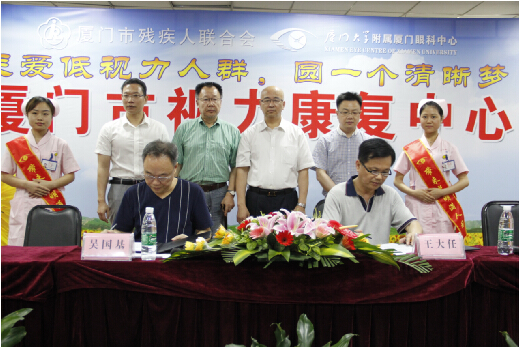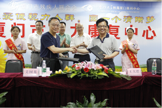 啟動儀式后,廈門市殘聯(lián)康復(fù)處處長王大任與廈門眼科中心業(yè)務(wù)院長吳國基代表雙方簽署了活動合作協(xié)議書,雙方達成合作意向。眼科中心隨即開設(shè)低視力門診,低視力患者醫(yī)療救助行動立即全面展開。