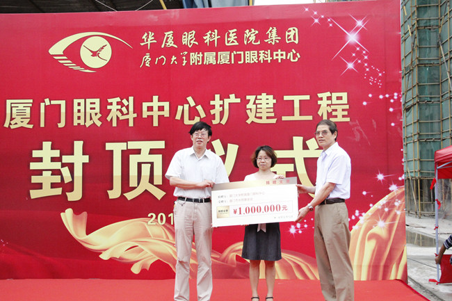 廈門(mén)眼科中心的封頂儀式在輕松的氣氛中開(kāi)始,儀式簡(jiǎn)單卻也頗具意義,主辦方將原本用于儀式的預(yù)算節(jié)約下來(lái),并在現(xiàn)場(chǎng)捐贈(zèng)給廈門(mén)市光明基金會(huì)。“這是廈門(mén)眼科中心也是華廈眼科醫(yī)院集團(tuán)延續(xù)公益慈善傳統(tǒng)的實(shí)際行動(dòng)。為了響應(yīng)國(guó)家規(guī)定,我們?cè)诨I辦封頂儀式時(shí)堅(jiān)決反對(duì)鋪張,并將原本預(yù)算聯(lián)合其他活動(dòng)預(yù)算的節(jié)余部分共計(jì)100萬(wàn)元捐入光明基金,用于貧困眼疾患者的手術(shù)費(fèi)用補(bǔ)助。可以說(shuō),封頂儀式的舉辦標(biāo)志著我們公益事業(yè)的再邁步。” 華廈眼科醫(yī)院集團(tuán)業(yè)務(wù)院長(zhǎng)侯家敏在采訪中對(duì)記者說(shuō)。