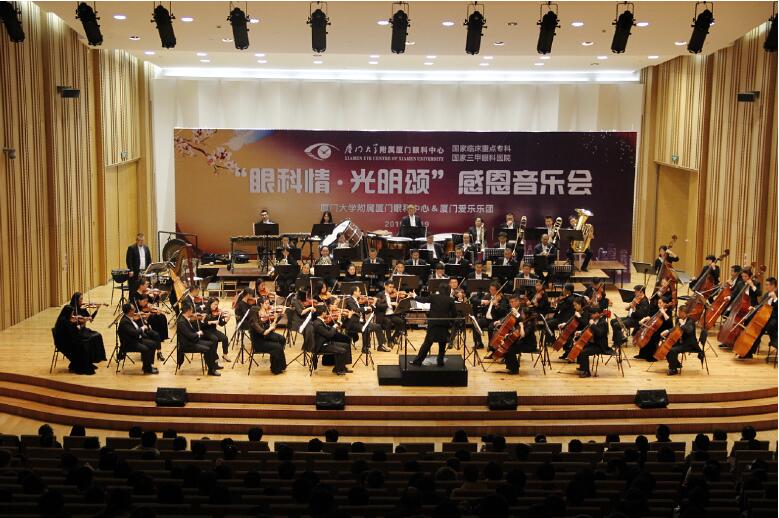 2015即將過去,新的一年即將到來。值此辭舊迎新之際,為答謝廣大市民朋友們長久以來對廈門眼科中心的信賴與支持。廈門眼科中心特別邀請海內(nèi)外聞名的廈門愛樂樂團(tuán)為廣大音樂愛好者獻(xiàn)上一場看得懂聽得懂的音樂盛宴。本次音樂會的主題為“眼科情·光明頌”,此次感恩音樂會于2015年12月19日周六晚上19:30在廈門大學(xué)科學(xué)藝術(shù)中心音樂廳隆重上演。音樂會當(dāng)天,廈大科藝音樂廳內(nèi)座無虛席,此次音樂會吸引了將近600位音樂愛好者和普通市民到場聆聽。