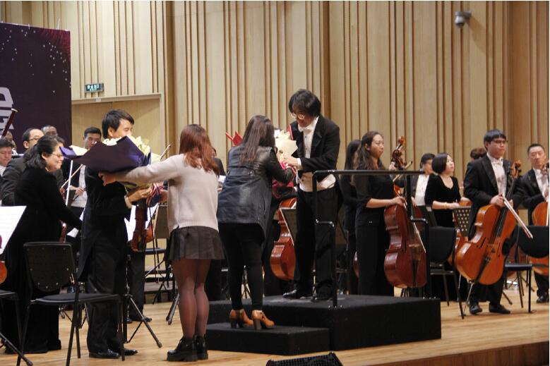 演奏完畢向樂團(tuán)獻(xiàn)花