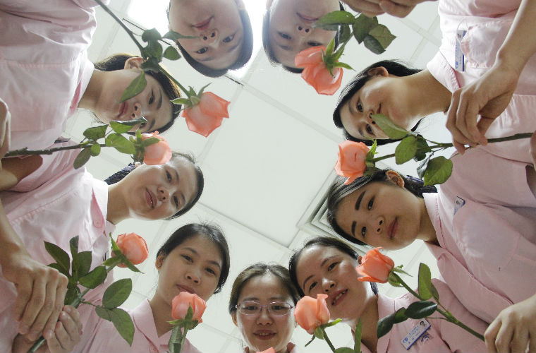 以后將不再戴護(hù)士帽了,我們決定拍個(gè)照紀(jì)念下逝去的護(hù)士帽,手拿玫瑰,圍成一個(gè)圓圈。