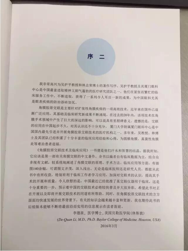 【文章導(dǎo)讀】由廈門眼科中心吳護平教授、林志榮博士后主編,中國干眼之父劉祖國教授主審的《角膜膠原交聯(lián)技術(shù)及臨床應(yīng)用》出刊啦,7月上旬將與大家正式見面啦! 《角膜膠原交聯(lián)技術(shù)及臨床