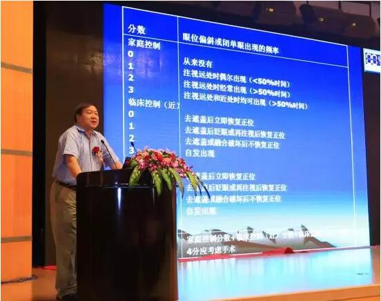 中華醫(yī)學(xué)會(huì)眼科學(xué)分會(huì)前任主任委員、中國醫(yī)師協(xié)會(huì)眼科醫(yī)師分會(huì)會(huì)長趙堪興教授在大會(huì)上做了關(guān)于“兒童常見斜視手術(shù)時(shí)機(jī)”的主題演講。趙教授認(rèn)為,兒童常見斜視主要有三類:內(nèi)斜視(ET)、外斜視(XT)、上斜肌麻痹(SOP)。在演講中,他和同仁分享了臨床了幾例疑難斜視病例的診斷過程、手術(shù)方案以及治療效果,并闡述兒童斜視早期干預(yù)是基于視覺發(fā)育規(guī)律決定的,具有豐富內(nèi)涵不只是盡早手術(shù)。先天性內(nèi)斜視破壞雙眼視覺發(fā)育,需2歲前完成,以爭(zhēng)取粗的立體視;間歇性外斜視宜在控制力明顯下降時(shí)手術(shù),術(shù)前應(yīng)能夠較準(zhǔn)確檢查斜視角以減少破壞雙眼視的風(fēng)險(xiǎn),3歲以前手術(shù)需慎重;先天性上斜肌麻痹需早期手術(shù)以保護(hù)雙眼視力,減少面部與脊柱發(fā)育畸形。