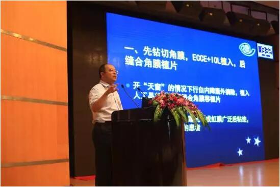 山東省眼科醫(yī)院的史偉云教授帶來了“角膜移植聯(lián)合白內(nèi)障摘除人工晶狀體植入術(shù)的設(shè)計(jì)”的主題演講。他主要以播放手術(shù)錄像來講解這個(gè)比較復(fù)雜的三聯(lián)手術(shù),生動(dòng)又直觀。在手術(shù)技巧和圍手術(shù)期處理上,他重點(diǎn)闡述了IOL植入前屈光度的計(jì)算、術(shù)前瞳孔的處理及麻醉和眼球軟化等4個(gè)方面。三聯(lián)手術(shù)術(shù)后處理除了按人工晶狀體植入常規(guī)處理外,從角膜移植的角度應(yīng)考慮術(shù)后視力問題,要注意穿透性角膜移植的并發(fā)癥,還要同時(shí)注意白內(nèi)障手術(shù)后等問題。