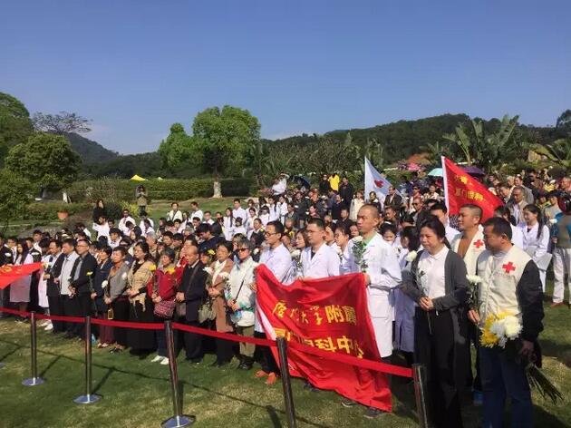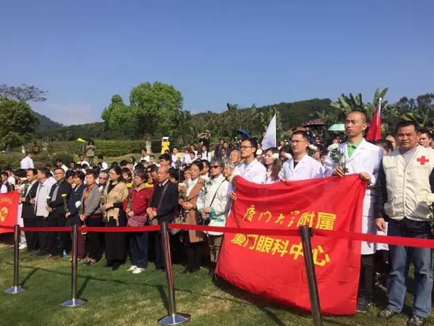 4月1日上午,廈門市紅十字會(huì)聯(lián)合廈門大學(xué)附屬廈門眼科中心在海滄文圃山陵園組織的2017年廈門市遺體與器官(組織)捐獻(xiàn)者緬懷紀(jì)念活動(dòng)順利舉行。捐獻(xiàn)者家屬、捐獻(xiàn)志愿者代表,廈門市紅十字會(huì)黨組書記、常務(wù)副會(huì)長(zhǎng)蘇蘇,廈門市紅十字會(huì)副會(huì)長(zhǎng)兼秘書長(zhǎng)俞娟,廈門市衛(wèi)計(jì)委醫(yī)政醫(yī)管處處長(zhǎng)陳糧,廈門大學(xué)附屬廈門眼科中心黨委書記陳逸恬,以及廈門海滄文圃山陵園開發(fā)有限公司、廈門大學(xué)醫(yī)學(xué)院、廈門醫(yī)學(xué)院、廈門大學(xué)附屬廈門眼科中心以及各區(qū)紅十字會(huì)代表共300余人參加了活動(dòng)。