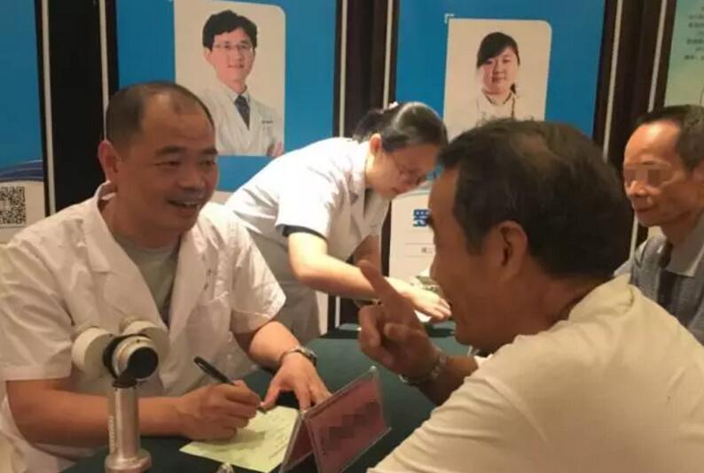 ▲廈門眼科中心白內障科陳偉主任親切詢問患者病情