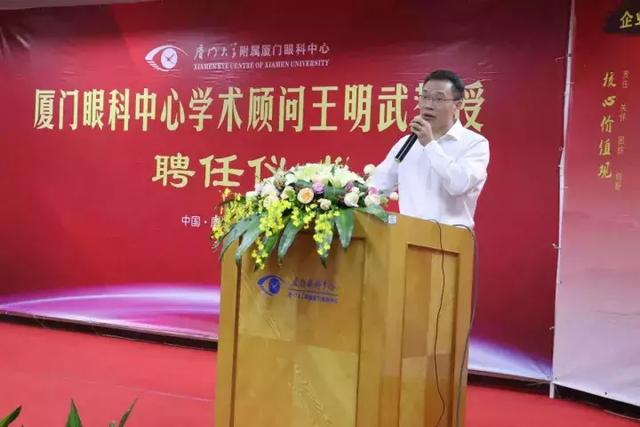 廈門大學(xué)眼科研究所所長劉祖國教授出席了儀式,并頒聘書給王明武教授,儀式由廈門大學(xué)附屬廈門眼科中心行政院長李曉峰主持。在廈指導(dǎo)交流期間,王明武教授還帶來了精彩的演講授課,并為眼表及角膜病患者進行了會診。