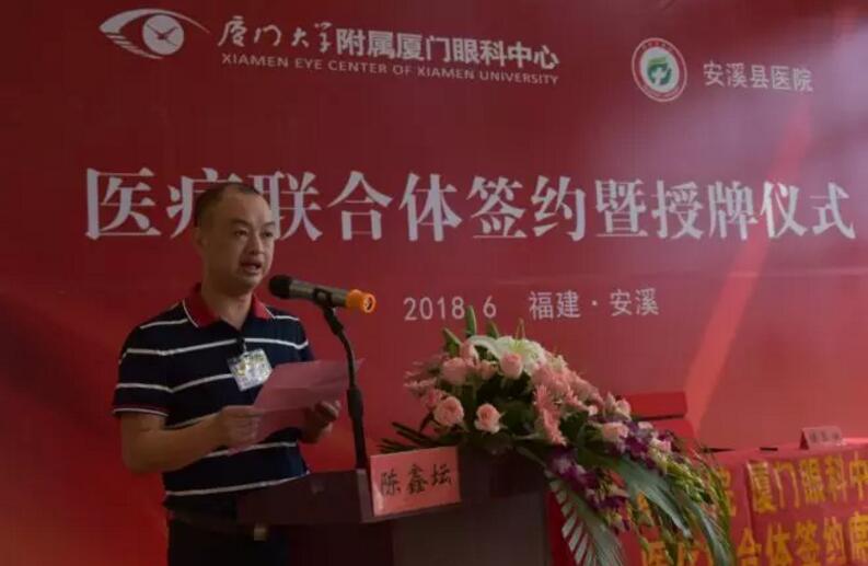 儀式上,安溪縣醫(yī)院陳鑫壇院長闡述了安溪縣醫(yī)院五官科的發(fā)展,本次和廈門眼科強(qiáng)強(qiáng)聯(lián)合、優(yōu)勢互補(bǔ)、資源共享的醫(yī)聯(lián)體共建將有助于實(shí)現(xiàn)安溪縣醫(yī)院眼科的跨越式發(fā)展。