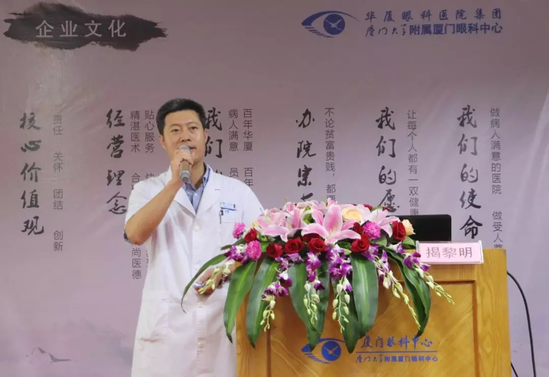 活動現(xiàn)場邀請到了廈門眼科中心屈光手術(shù)中心科執(zhí)行主任——揭黎明主任醫(yī)師為前來參加活動的近視朋友們分享了近視激光手術(shù)的發(fā)展及當前世界主流的手術(shù)技術(shù)。