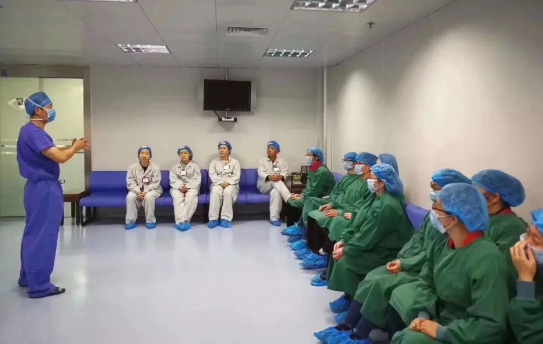 互動結(jié)束后,在工作人員中的指引下,參加活動的近視朋友被引導(dǎo)進到手術(shù)室,實地觀摩近視激光手術(shù)。
