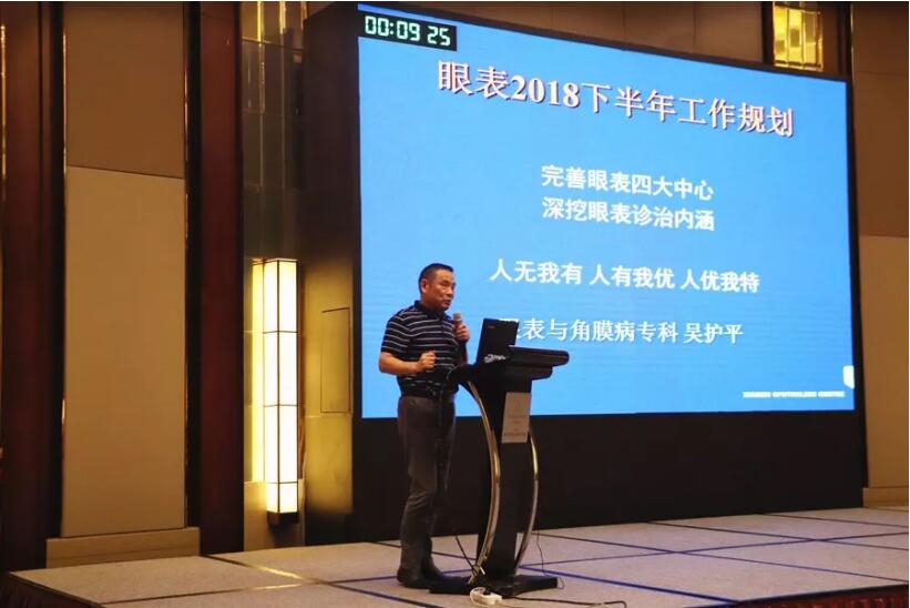 眼表及角膜病??瓶浦魅巍I(yè)務(wù)副院長吳護平教授作工作匯報