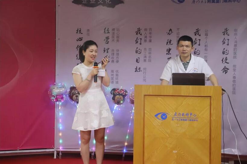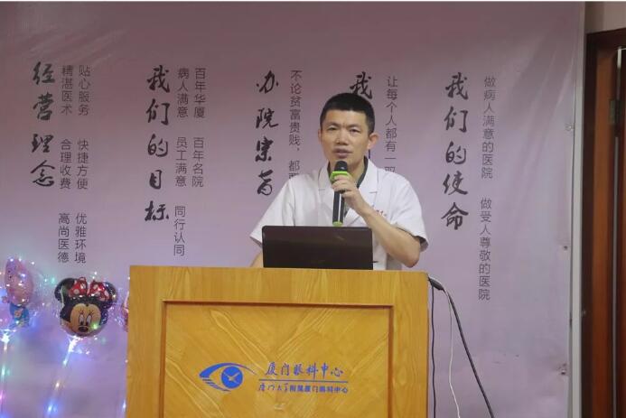 廈門大學(xué)附屬廈門眼科中心屈光手術(shù)中心科副主任黎新主任醫(yī)師為到場的近視患者做了一場專業(yè)、生動、全面的近視屈光講座。