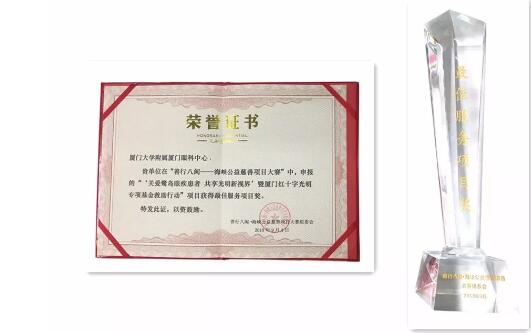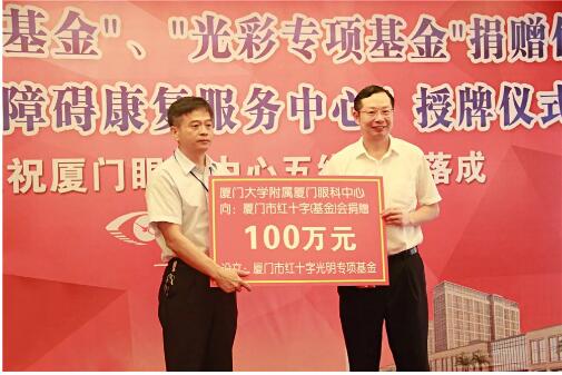 2016年7月21日,廈門大學(xué)附屬?gòu)B門眼科中心向廈門市紅十字基金會(huì)捐資100萬(wàn)元,設(shè)立廈門市紅十字會(huì)(基金會(huì))光明專項(xiàng)基金。在廈門紅十字會(huì)的指導(dǎo)支持下,廈門大學(xué)附屬?gòu)B門眼科中心派出專業(yè)醫(yī)療組深入到全市各個(gè)居委會(huì)或村部,以防盲宣教及普查的方式,為廈門人民進(jìn)行眼疾篩查,并幫助患者及時(shí)治療,特別針對(duì)貧困的眼疾患者,基金提供必要的手術(shù)冶療費(fèi)用救助,減輕貧困患者的經(jīng)濟(jì)負(fù)擔(dān),幫助他們恢復(fù)光明。自基金成立以來(lái),廈門眼科中心已捐資200余萬(wàn),為300萬(wàn)余人次進(jìn)行篩查眼疾,已救助近800名貧困眼疾患者。
