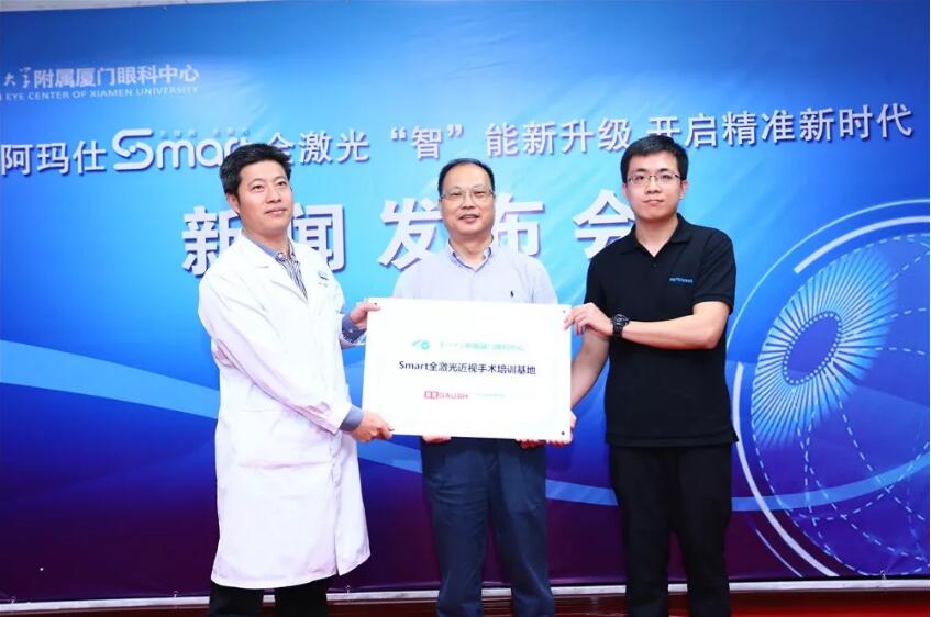 鑒于對廈門眼科中心手術(shù)專家團隊的高度認可,發(fā)布會上,張季經(jīng)理代表阿瑪仕公司給廈門眼科中心頒發(fā)“Smart全激光近視手術(shù)培訓(xùn)基地”榮譽獎牌。