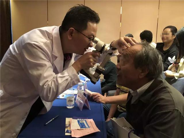 廈門大學附屬廈門眼科中心白內(nèi)障??脐惲粮敝魅吾t(yī)師為市民查眼