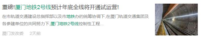 今年年底,大家翹首期盼的廈門地鐵2號(hào)線,預(yù)計(jì)就要開通試運(yùn)營了?。?/div>