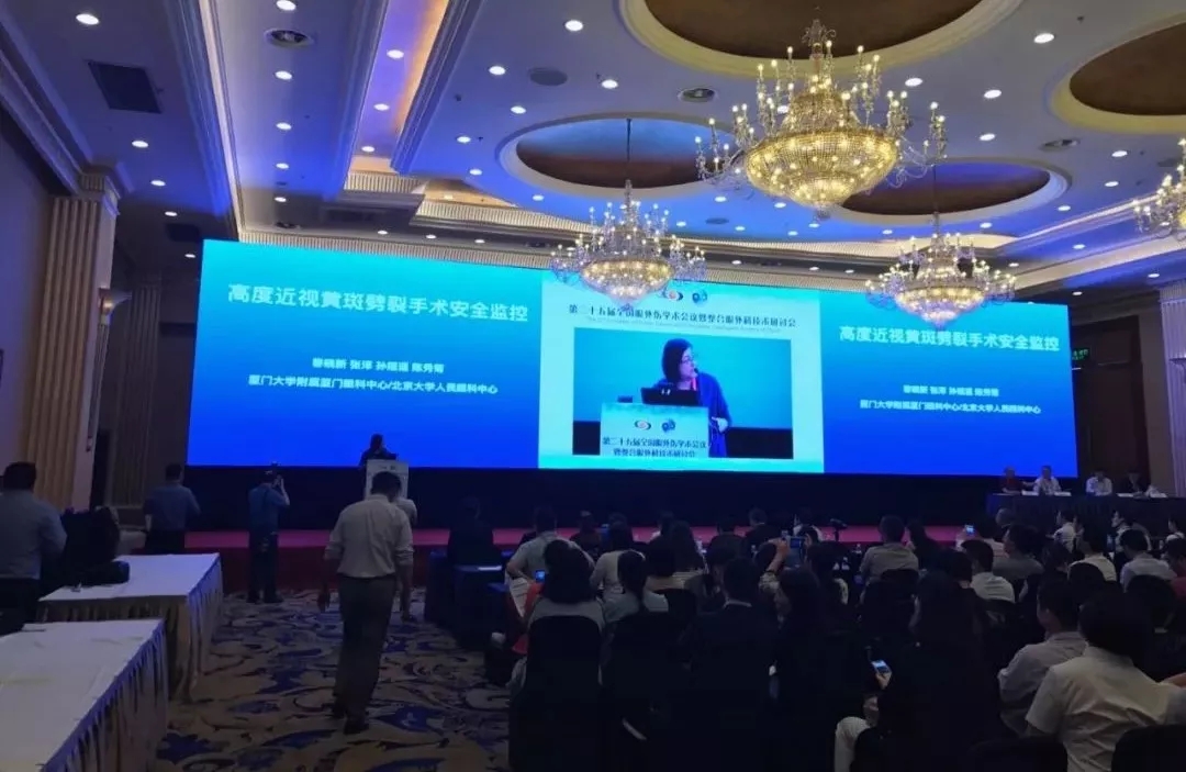 黎曉新院長受邀作為大會的VIP專家,在視網(wǎng)膜外科專場,進行了《高度近視黃斑劈裂手術安全》的演講,將北京大學人民醫(yī)院、廈門大學附屬廈門眼科中心的患者數(shù)據(jù)進行對比,證實高度近視黃斑劈裂相關治療爭論焦點。