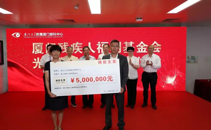 五緣院區(qū)開業(yè)儀式上,廈門眼科中心再次將“光明的信仰”傳遞——為廈門市殘聯(lián)捐款500萬元,成立專項基金,用于視力殘疾預防、眼科手術(shù)救助、盲人協(xié)會活動等。