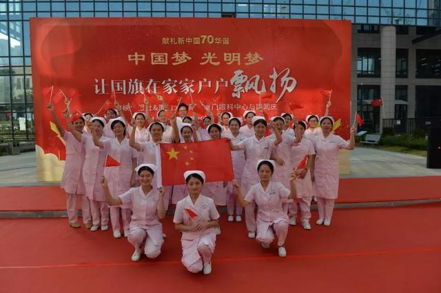 啟動儀式結(jié)束后,眼科中心將舉行形式多樣的獻禮新中國七十華誕活動。白衣天使們揚起鮮艷的五星紅旗之間,盡顯新時代的使命與責(zé)任。