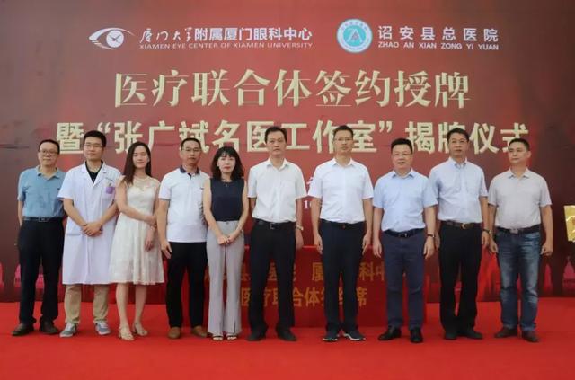 一個(gè)名醫(yī)可以帶動(dòng)一個(gè)名科,一個(gè)名科可以帶動(dòng)一個(gè)名院。在詔安縣縣政府和縣衛(wèi)健局牽頭組織下,“張廣斌名醫(yī)工作室”也同時(shí)在詔安縣總醫(yī)院揭牌。廈門(mén)大學(xué)附屬?gòu)B門(mén)眼科中心白內(nèi)障??茙ь^人、國(guó)內(nèi)知名白內(nèi)障專家張廣斌教授及其學(xué)科團(tuán)隊(duì)骨干,組建“張廣斌名醫(yī)工作室”。他們將定期來(lái)到縣總醫(yī)院坐診,極大地方便詔安人民就診。