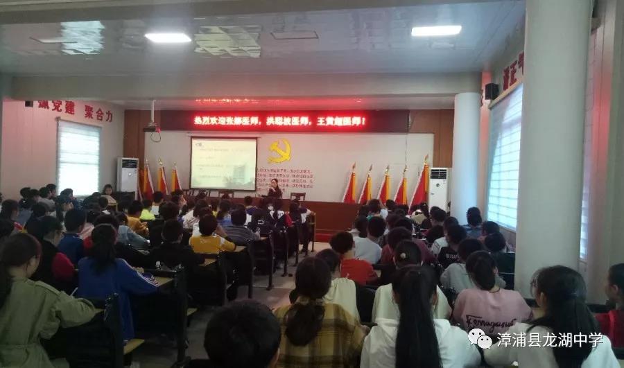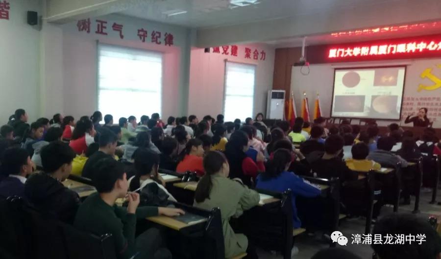 2019年12月17日下午,廈門大學(xué)附屬廈門眼科中心走進(jìn)漳浦縣龍湖中學(xué),響應(yīng)國家提倡預(yù)防和控制青少年近視的政策,與龍湖中學(xué)共同開展青少年近視防控講座,主題是“近視防控,愛眼護(hù)眼,從你我做起”。龍湖中學(xué)校長蔡漢云,廈門大學(xué)眼科中心視光科任小軍主任醫(yī)生,洪聰波、劉淑婷、張娜、王黃超醫(yī)師,龍湖中學(xué)有關(guān)領(lǐng)導(dǎo),七年1班、2班、3班班主任和三個班的全體學(xué)生近兩百人參加講座。