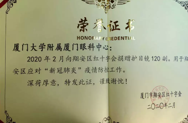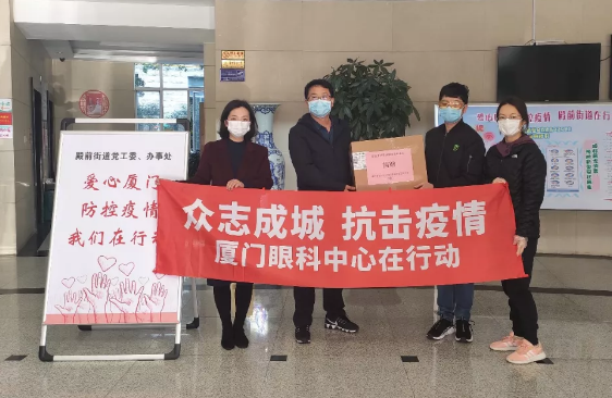 只見,數(shù)位志愿者將一箱箱護(hù)目鏡送到街道代表手中,一旁的紅色橫幅寫著“眾志成城,抗擊疫情,廈門眼科中心在行動”的醒目大字。連日來,這樣的愛心場景出現(xiàn)在廈門各街道,這是來自廈門大學(xué)附屬廈門眼科中心的愛心捐贈。
