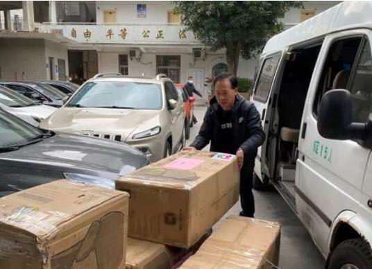 一大早工作人員就將愛心口罩送至廈門市教育事務受理中心