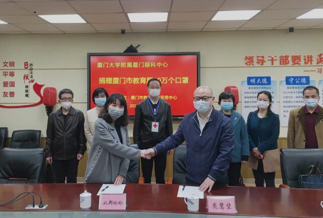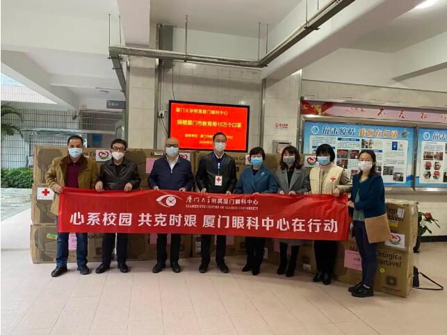 近日,廈門大學附屬廈門眼科中心向廈門市紅十字會捐贈了20萬只口罩。其中15萬只定向捐贈給廈門市教育局及各區(qū)教育局,用于教育系統(tǒng)疫情防控一線。