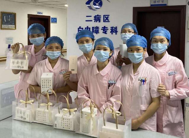 護(hù)理部主任許春麗表示:“今年因?yàn)橐咔榈脑颍o(hù)士們的工作壓力會(huì)更大,特別選擇了小愛(ài)同學(xué)智能機(jī)器人藍(lán)牙音響作為禮物,讓護(hù)士們?cè)诠ぷ髦喔玫姆潘尚那椤?rdquo;