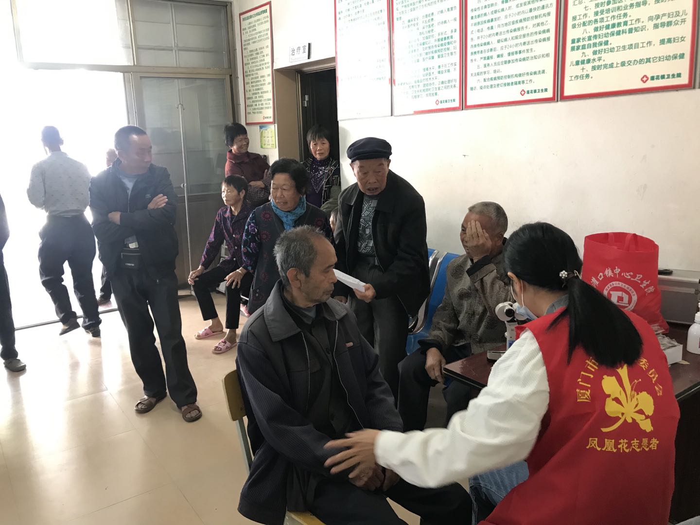 剛從田里回來的李奶奶,一大早就搬著小板凳,等著醫(yī)生做檢查。