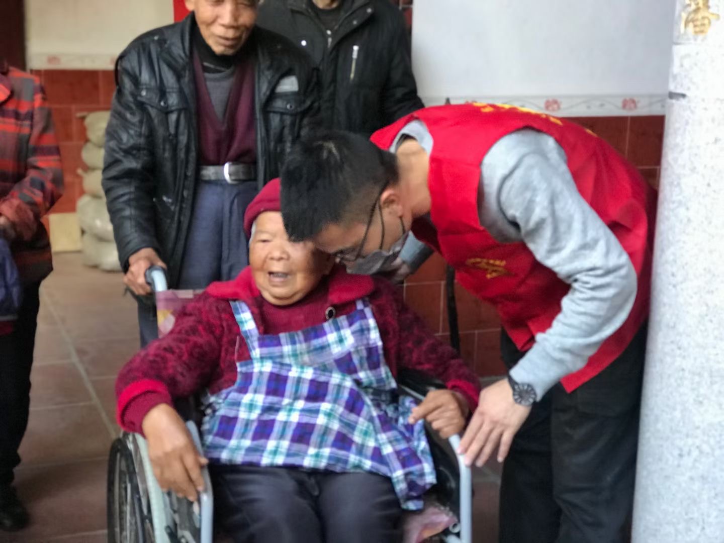 除了軍營村,志愿服務(wù)隊(duì)還來到了白交祠村,尾林村,淡溪村,小坪村,西坑村5個高山村莊。除了排隊(duì)等候檢查的村民,一部分高齡或者行動不便的老人,醫(yī)生們扛著檢查設(shè)備,提供入戶服務(wù)。專家來到家里,退伍老兵陳大爺:“現(xiàn)在年紀(jì)大了,腿腳不便,出趟門不容易,感謝你們?yōu)槲覀兲峁┵N心服務(wù),讓我們在家里就享受到專業(yè)的眼健康檢查。”