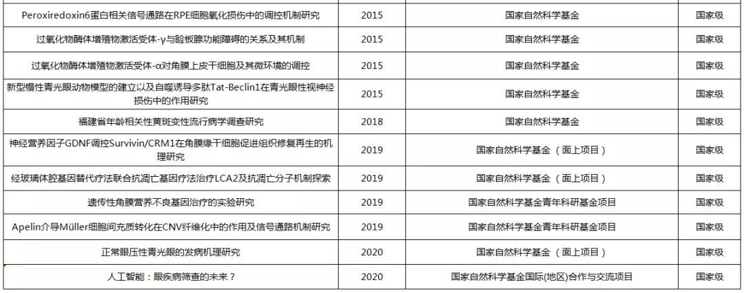 國家臨床重點(diǎn)???/u>、國家藥物臨床試驗(yàn)機(jī)構(gòu)、國家住院醫(yī)師規(guī)范化培訓(xùn)基地、福建省眼科與視覺科學(xué)重點(diǎn)實(shí)驗(yàn)室、福建省臨床重點(diǎn)???。