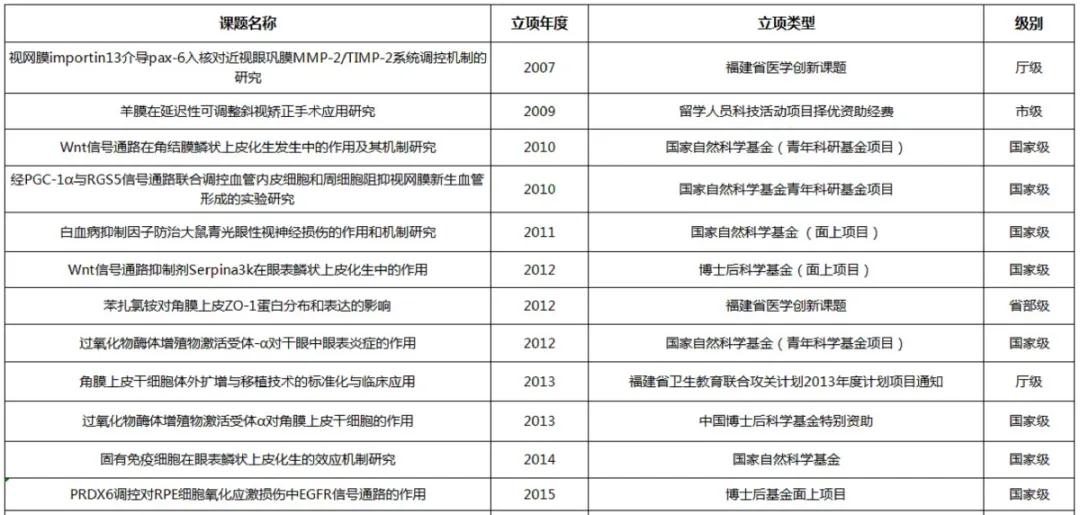 人才的引進(jìn)為醫(yī)院的發(fā)展注入“源動(dòng)力”。在廈門(mén)大學(xué)醫(yī)學(xué)院的引領(lǐng)下,廈門(mén)大學(xué)附屬?gòu)B門(mén)眼科中心大力推動(dòng)技術(shù)創(chuàng)新,科研技術(shù)長(zhǎng)足進(jìn)步,不斷增強(qiáng)百姓就醫(yī)獲得感。截至2020年,中心已完成院內(nèi)973、863、國(guó)家重大研究計(jì)劃、國(guó)家自然科學(xué)基金42項(xiàng),省市級(jí)課題120余項(xiàng),獲得三項(xiàng)省部級(jí)科技進(jìn)步一等獎(jiǎng)。