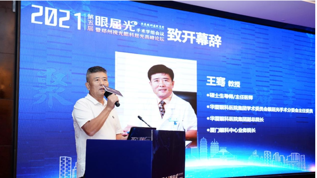 ▲集團(tuán)學(xué)術(shù)委員會眼屈光學(xué)會分委會主任委員、廈門眼科中心業(yè)務(wù)院長王騫教授致開幕辭