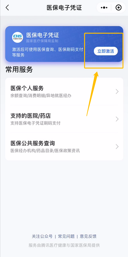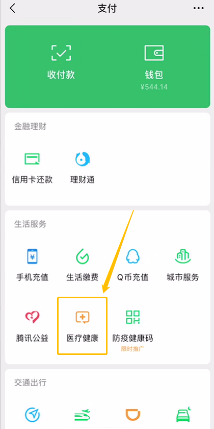 進入微信,點擊“支付”-“醫(yī)療健康”-“醫(yī)保電子憑證”