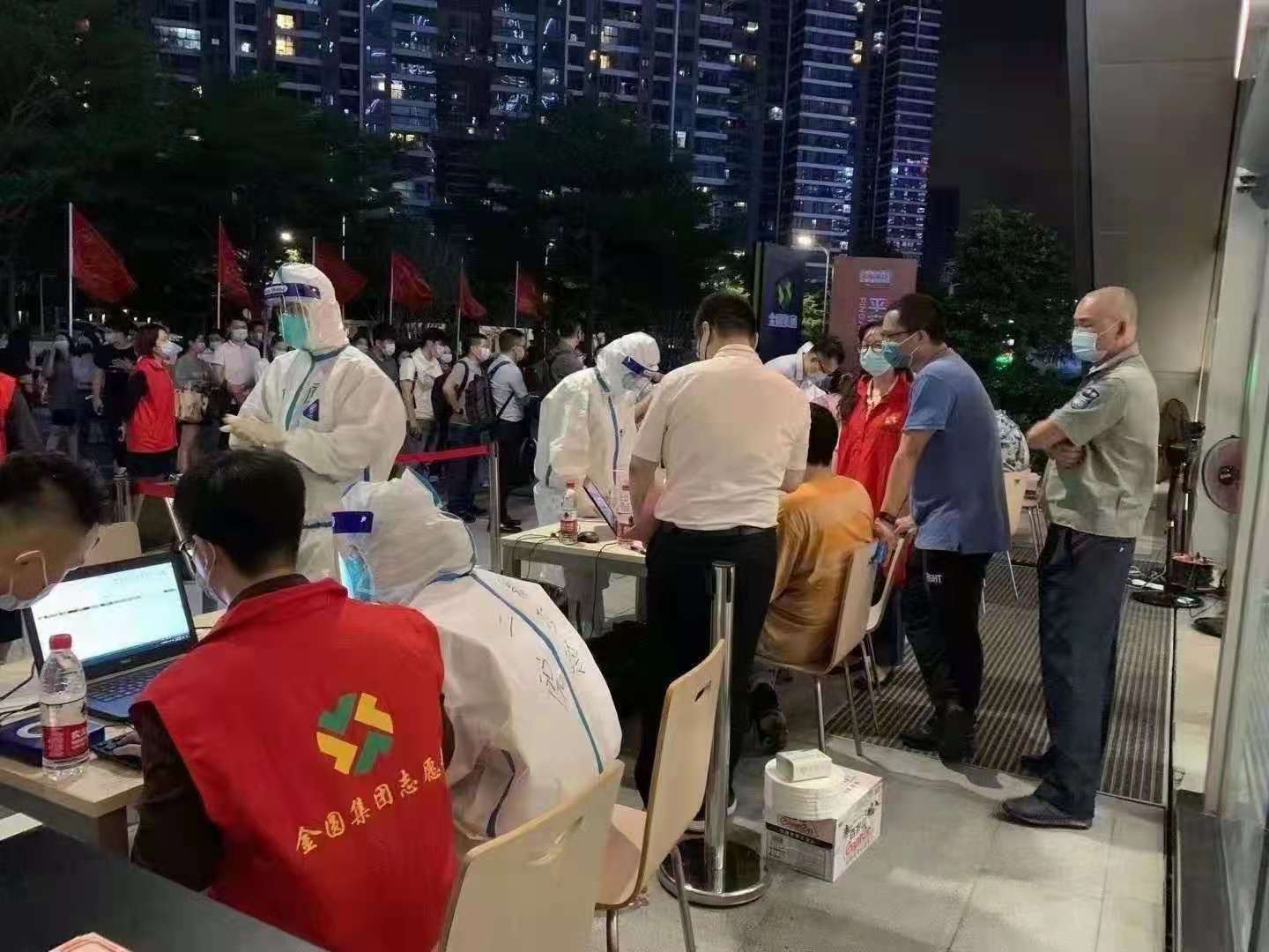 多名醫(yī)護(hù)人員緊急趕赴一線,參與核酸檢測(cè)工作