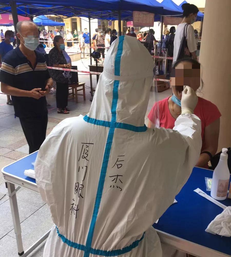 廈門市第三輪全員核酸檢測啟動。依照部署,廈門眼科中心醫(yī)護(hù)人員奔赴各社區(qū)核酸檢測點(diǎn)支援。截止發(fā)稿,廈門眼科中心已派出403名醫(yī)護(hù)人員前往25個(gè)社區(qū),助力廈門市打贏疫情防控這場硬仗。作為支援前線的一員,22歲的男護(hù)士——后杰,主動報(bào)名,“隨叫隨到”。