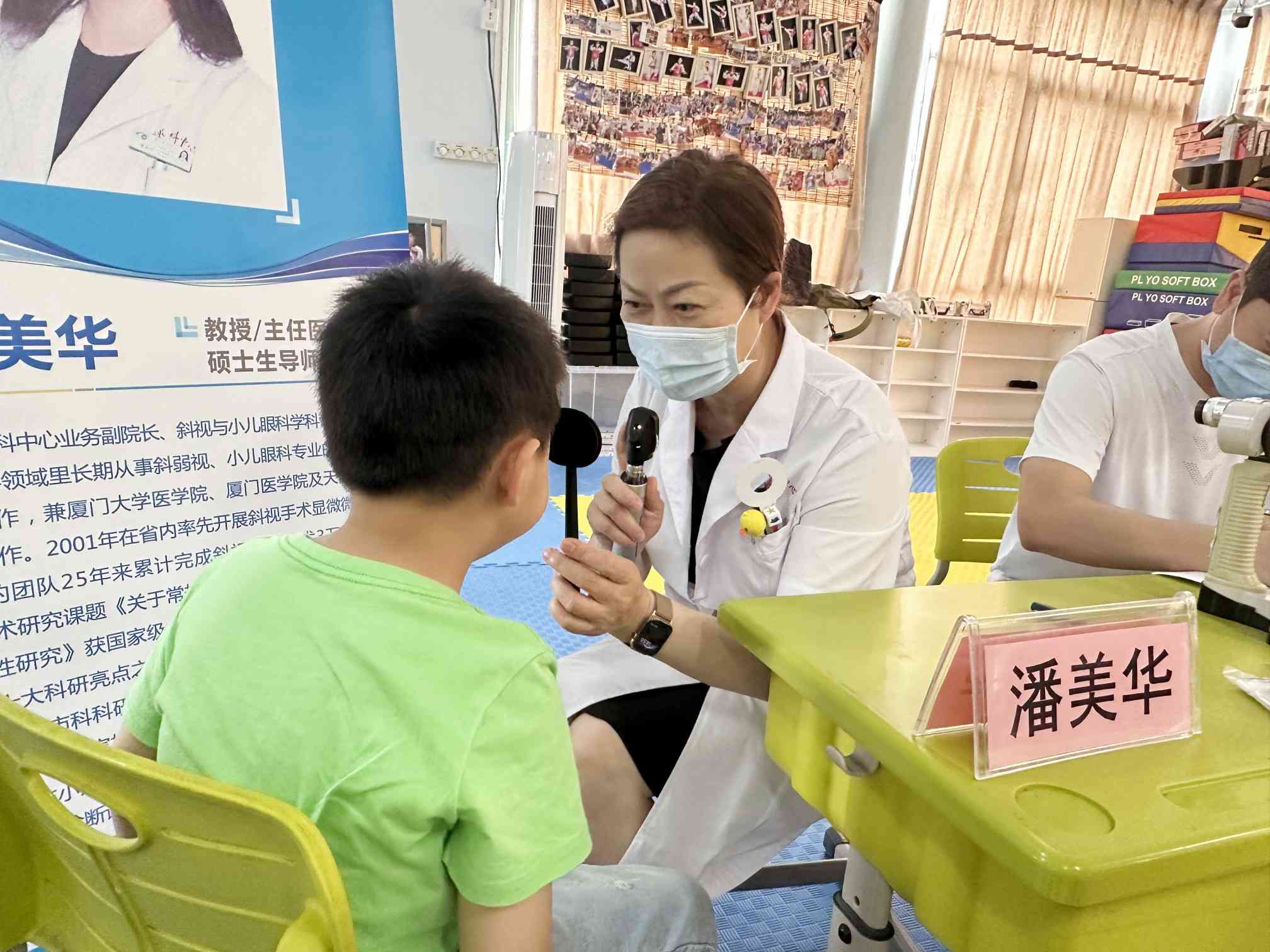 近日,為守護(hù)特需兒童的光明未來,在廈門市「愛心廈門」建設(shè)工作領(lǐng)導(dǎo)小組辦公室及海滄區(qū)殘疾人聯(lián)合會的指導(dǎo)下,廈門眼科中心「看見幸?!寡劢】倒骓椖恐驹刚叻?wù)隊在業(yè)務(wù)副院長、斜視與小兒眼病中心學(xué)科帶頭人潘美華教授的帶領(lǐng)下,來到了海滄區(qū)小海星特殊兒童服務(wù)中心,為特需兒童們開展了一場特殊的眼健康公益篩查診療活動。