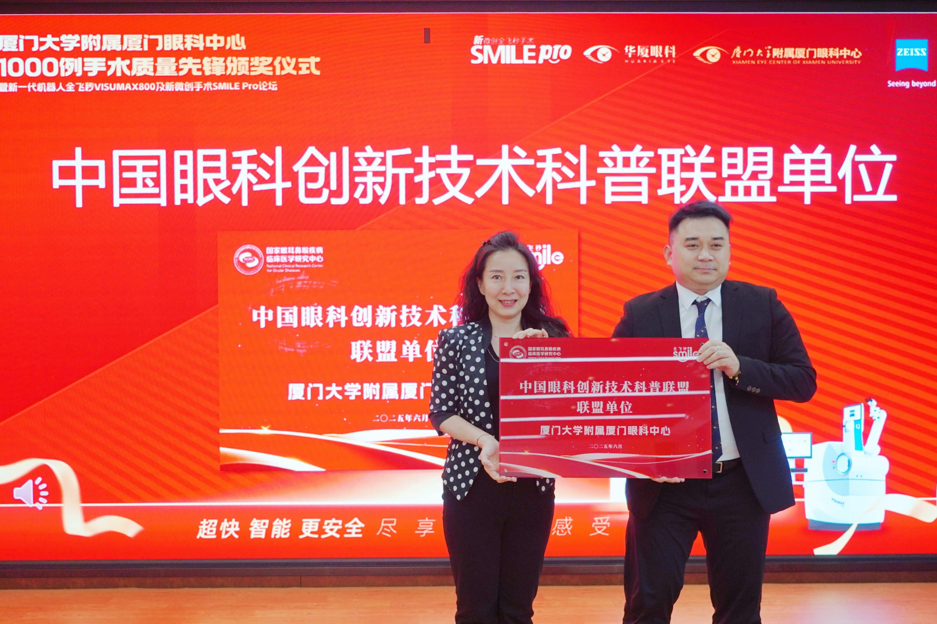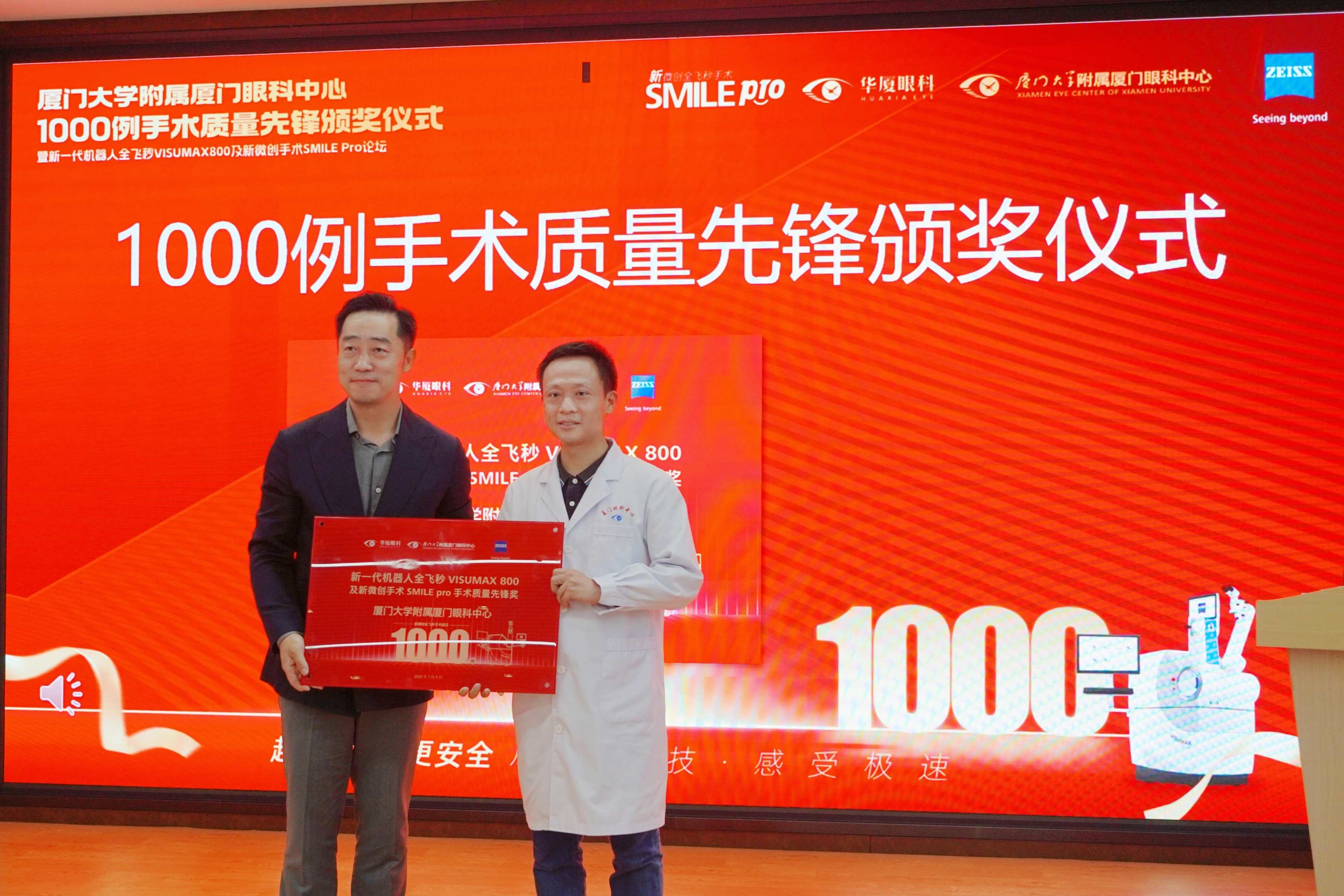 會議核心環(huán)節(jié),蔡司總部授予廈門眼科中心“SMILE Pro 1000例手術質量先鋒獎”,這一殊榮是對廈門眼科中心在全飛秒SMILE Pro手術領域卓越成就的高度認可。
