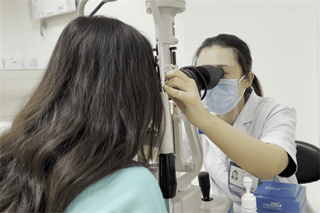 在干眼檢查室里,我們?yōu)榇蠹易隽蓑x鏡檢項目。
